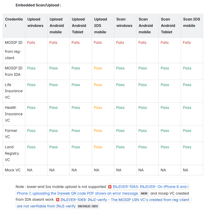 Below are the results for Upload, Scan and OVP flow functionality with Windows, Android phone, MAC, Android Tablet, iPad and iPhone with different browsers: