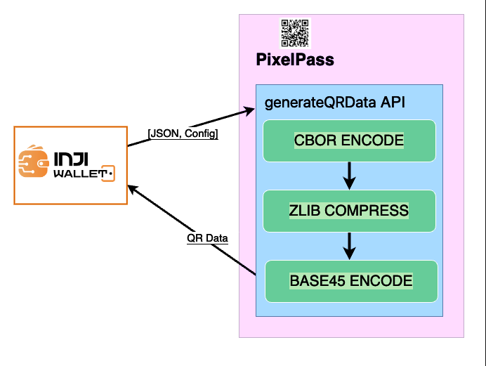 The below diagram shows how Inji Wallet utilises PixelPass library.