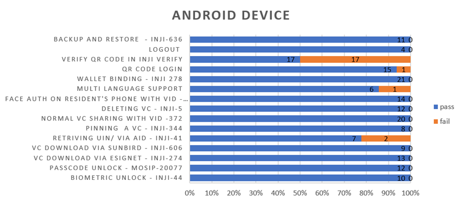 Below are the test metrics by performing functional testing using mock MDS and mock ABIS. The process followed was black box testing which based its test cases on the specifications of the software component under test. The functional test was performed in combination with individual module testing as well as integration testing. Test data were prepared in line with the user stories. Expected results were monitored by examining the user interface. The coverage includes GUI testing, System testing, End-To-End flows across multiple languages and configurations. The testing cycle included the simulation of multiple identity schema and respective UI schema configurations.