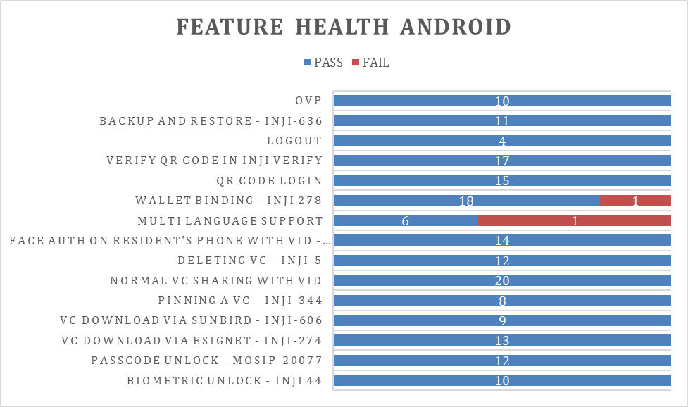Below are the test metrics by performing functional testing using mock MDS and mock ABIS. The process followed was black box testing which based its test cases on the specifications of the software component under test. The functional test was performed in combination with individual module testing as well as integration testing. Test data were prepared in line with the user stories. Expected results were monitored by examining the user interface. The coverage includes GUI testing, System testing, End-To-End flows across multiple languages and configurations. The testing cycle included simulation of multiple identity schema and respective UI schema configurations.
