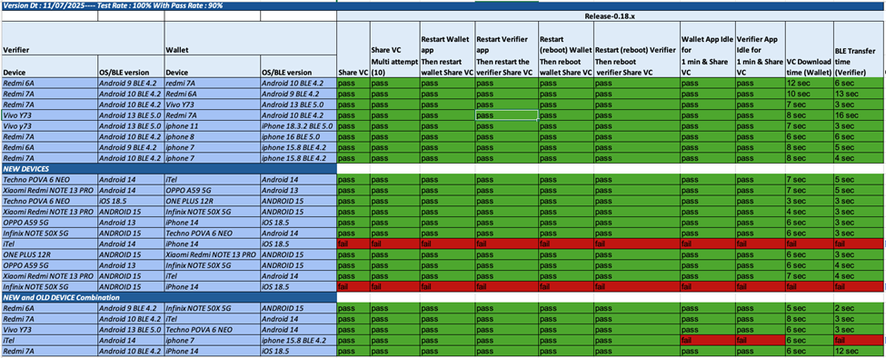 Below are the test metrics by performing VC Sharing functionality on various device combinations