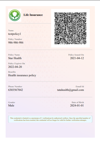 **A** - The credential issuer must have provided details such as **Policy Number**, **Name** and **DOB** for an Insurance card. This information has to be fed to the authentication system to enable download.