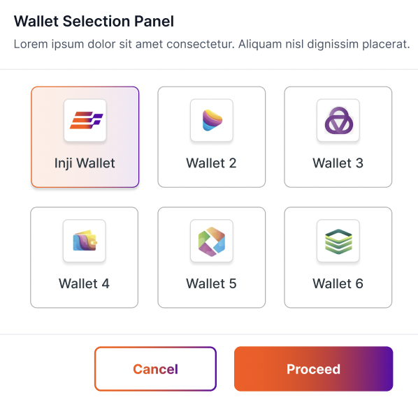 <figure><img src="https://3039626265-files.gitbook.io/~/files/v0/b/gitbook-x-prod.appspot.com/o/spaces%2FaY8BQ4hdzhSchZV814Ev%2Fuploads%2Fgit-blob-05db00a25463d53e067d9e50f6f1cb02503c5874%2Fimage.png?alt=media" alt=""><figcaption><p><strong>Wallet Selection Panel from Verifer</strong></p></figcaption></figure>