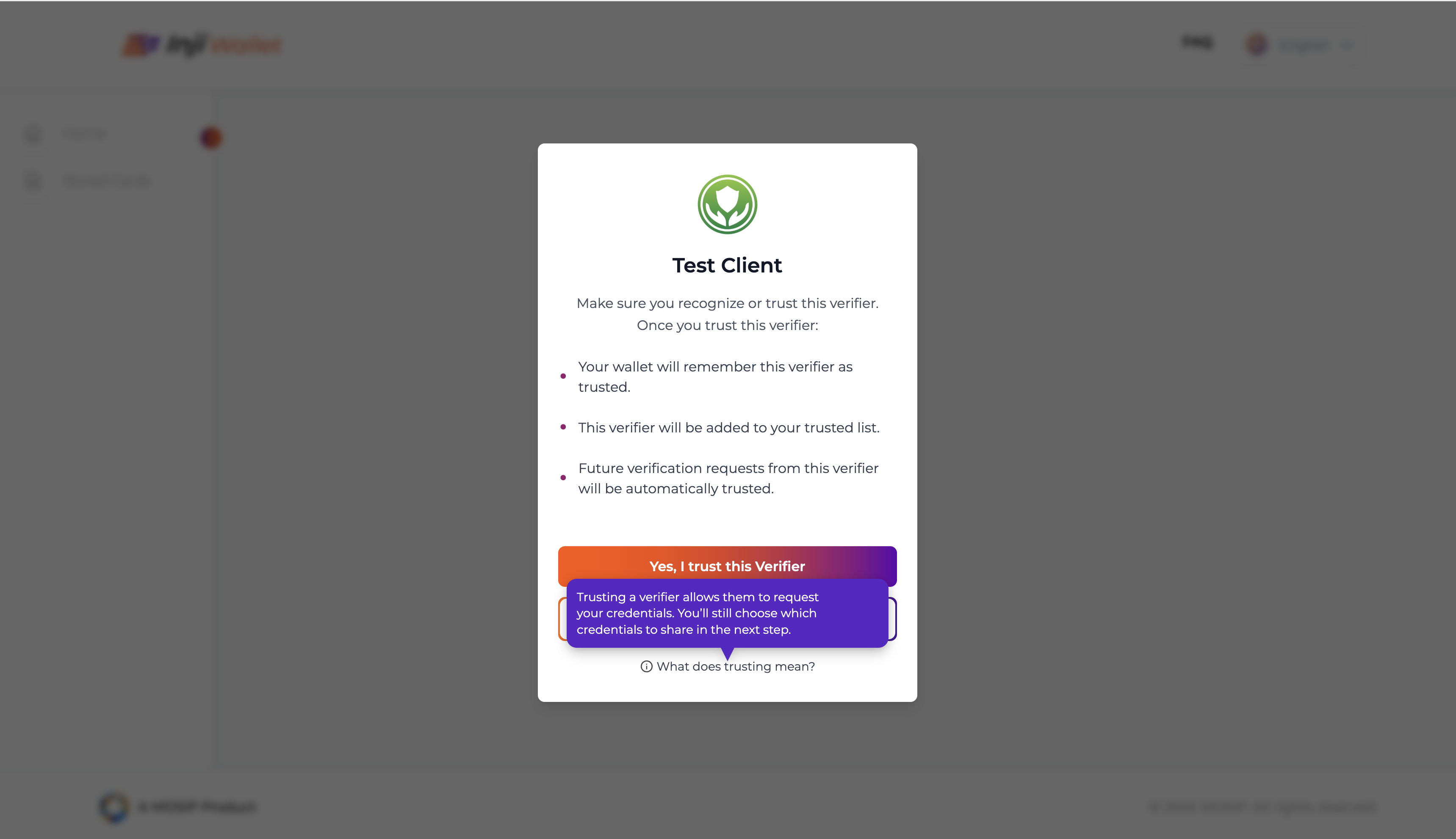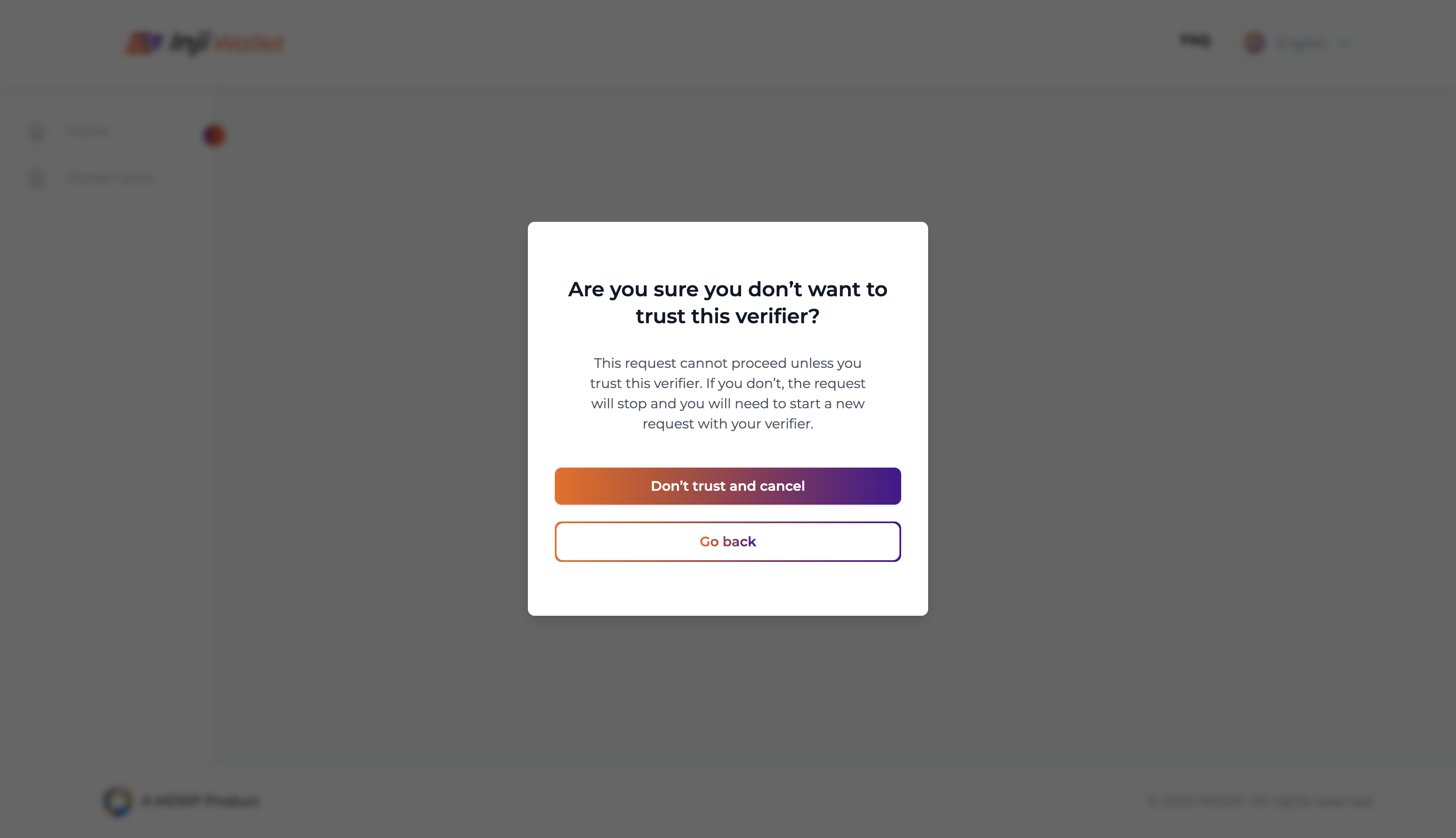 <figure><img src="https://3039626265-files.gitbook.io/~/files/v0/b/gitbook-x-prod.appspot.com/o/spaces%2FaY8BQ4hdzhSchZV814Ev%2Fuploads%2Fgit-blob-712a4e86b28a1834272a5e073fab5d574aa8c30a%2FScreenshot%202025-11-20%20at%206.59.29%E2%80%AFPM%20(1).png?alt=media" alt=""><figcaption><p><strong>Verifer Trust Cancel Pop-up</strong></p></figcaption></figure>